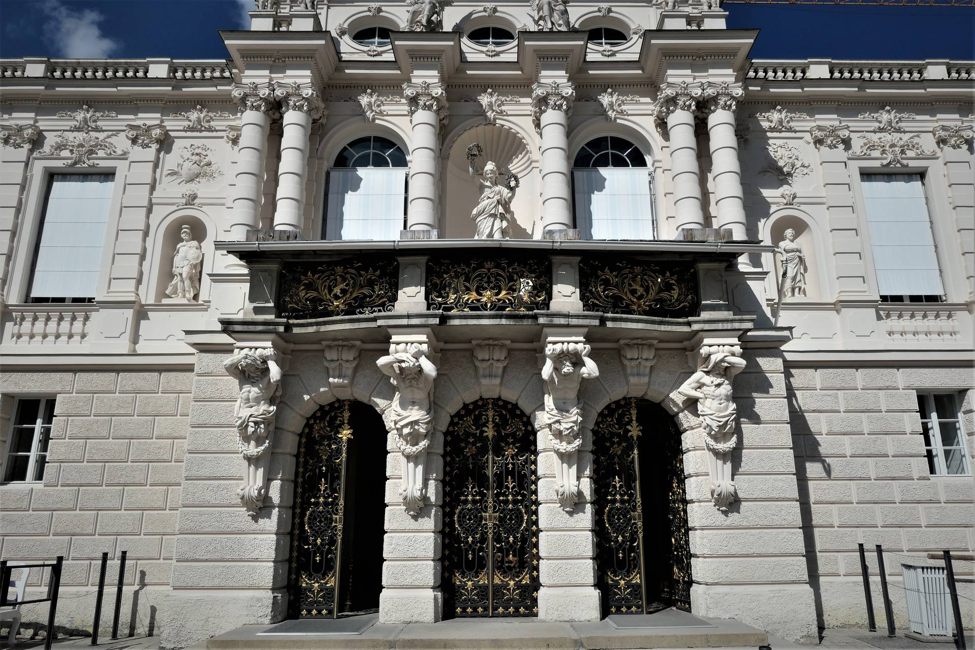 Entstanden auf dem Grund des väterlichen Jagdhauses, das 1874 abgetragen und etwas weiter entfernt wieder aufgebaut wurde, weist die blendend weiße, filigrane Rokokofassade des Schlösschens nur vage auf das prachtvolle Dekor der Innenräume hin. Drinnen überwältigt die Fülle an Gold, Silber, Marmor, kostbaren Edelsteinen und Stoffen: Das Audienzzimmer mit dem goldverzierten, samtgrünen Thron, das weitläufige königliche Schlafgemach, das dem Ludwigs XIV. in Versailles angeglichen ist, das Speisezimmer mit dem berühmten „Tischlein-deck-dich“ und das Spiegelkabinett, in dem der Schlossherr sich gegenüberliegende Spiegel hatte anbringen lassen: „ Nun muss der eine immer des anderen Bild wiedergeben, fort und fort, ohne Aufhören. Ich hatte den Blick in die Unendlichkeit geschaffen“, heißt es in seinem Tagebuch.
