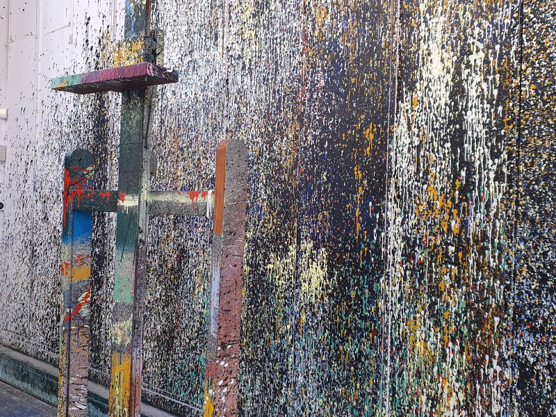 In den 1960er Jahren wandte sich Hartung mit Acryl- und Vinylfarben neuen künstlerischen Ausdrucksformen zu. Sein original erhaltenes Atelier in Antibes, zweifelsohne der Höhepunkt eines Besuchs, ist der sprechende Ausdruck dieser Wandlung. Dieser Atelierraum ist ein einziger Farbenrausch. Hartung experimentierte mit der Spritz- und Sprühtechnik. Von seinem Rollstuhl aus, an den er im Alter gebunden war, schuf er mit Spritzpistolen seine großformatigen Werke, begleitet von klassischer Musik aus den Lautsprechern. Seine umfangreiche Farbenpalette ist ebenso zu sehen wie seine vielfältige Sammlung an Malutensilien: Pinsel, Spachtel, Reisigbesen, Rechen, Schaber, Stahlbürsten, Farbwalzen. Anna-Eva Bergman, die ihren eigenen abstrakt minimalistischen Stil gefunden hatte, arbeitete nebenan in ihren separaten Atelierräumen. Lange hatte sie im Schatten ihres Ehemannes gestanden, doch zwischenzeitlich findet auch ihre klare, ruhige Kunst die ihr gebührende Würdigung.