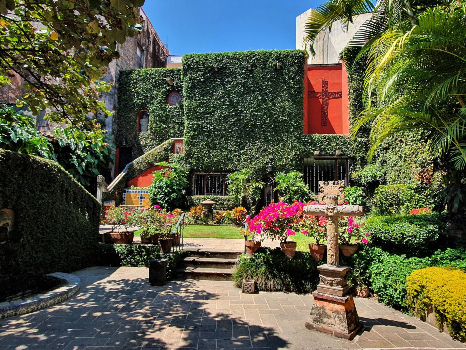 Aber natürlich braucht es eine Menge Geld und viel ästhetisches Gespür, um so ein Gebäude in Besitz zu nehmen und zu gestalten. Brady hatte beides. Er stammte aus einer reichen Transportunternehmer-Familie aus Iowa. Schon in jungen Jahren fühlte er sich von der Welt der Kunst angezogen. Nach dem Kunststudium in Chicago zog es ihn zur Barnes Foundation nach Philadelphia. Albert C. Barnes‘ Kunstverständnis und sein Faible für afrikanische Stammeskunst haben Brady lebenslang geprägt. Auch Peggy Guggenheim, die exzentrische Sammlerin, mit der er sich während der darauffolgenden Jahre in Venedig angefreundet hatte, beeinflusste seine Sammelleidenschaft maßgeblich. Sie war es auch, die ihn zu einer Reise nach Mexiko inspirierte. Dort in Cuernavaca südlich von Mexico City fiel sein Auge auf dieses Anwesen, ein ursprünglich der Kathedrale angegliedertes Franziskanerkloster aus dem 16. Jahrhundert. Brady konnte es erwerben und renovierte es in den kommenden Jahren nach seinen Vorstellungen – Atelier, Garten, Wohnräume –, nicht ohne dabei den originalen Baubestand respektvoll zu integrieren. Entstanden ist ein urbanes Paradies, in dem Natur wie Kultur zu ihrem Recht kommen.