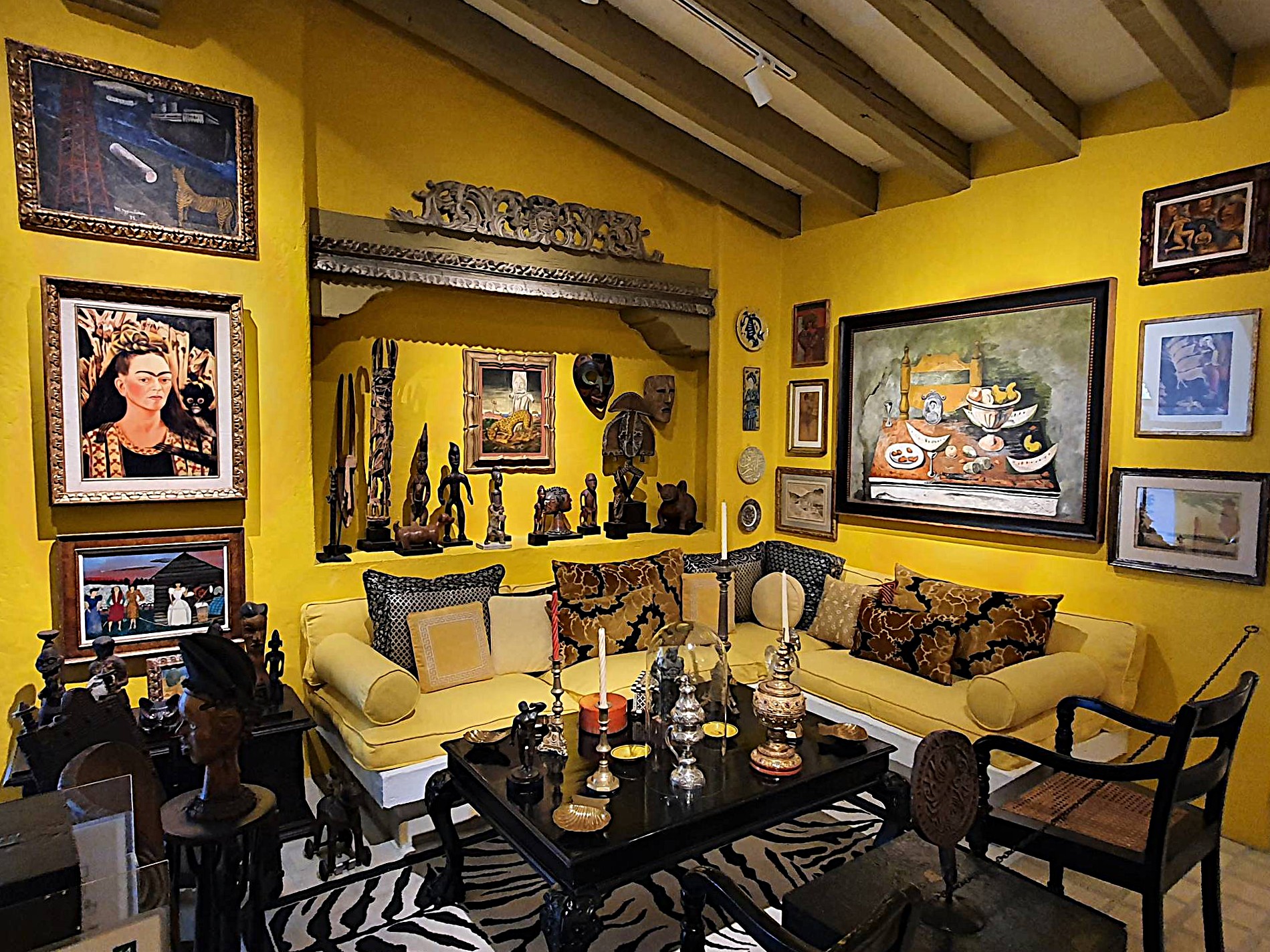 Weit über tausend Exponate aus der ganzen Welt füllen jeden Winkel dieses Refugiums, ganz nach dem persönlichen Geschmack und Blick des ehemaligen Hausherrn arrangiert. Skulpturen, Möbel, Textilien, Keramiken, Gemälde aus unterschiedlichen Zeiten und Kulturen gehen in Bradys musealer Sammlung überraschende Korrespondenzen ein. Prähispanische Figuren, afrikanische Masken, mexikanische Puppen, orientalische Möbel, Kruzifixe, Buddhas haben ihren Platz neben zeitgenössischen Werken etwa von Frida Kahlo, Diego Rivera oder Rufino Tamayo.