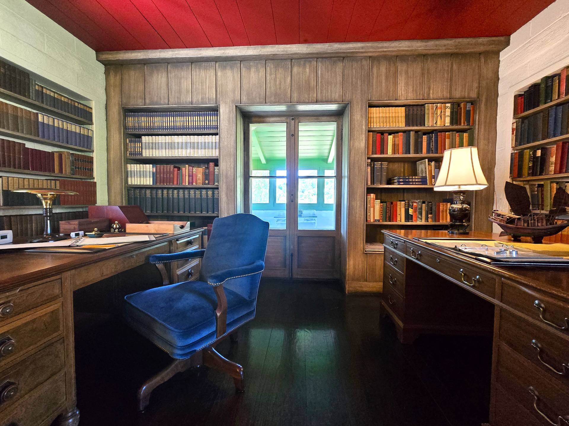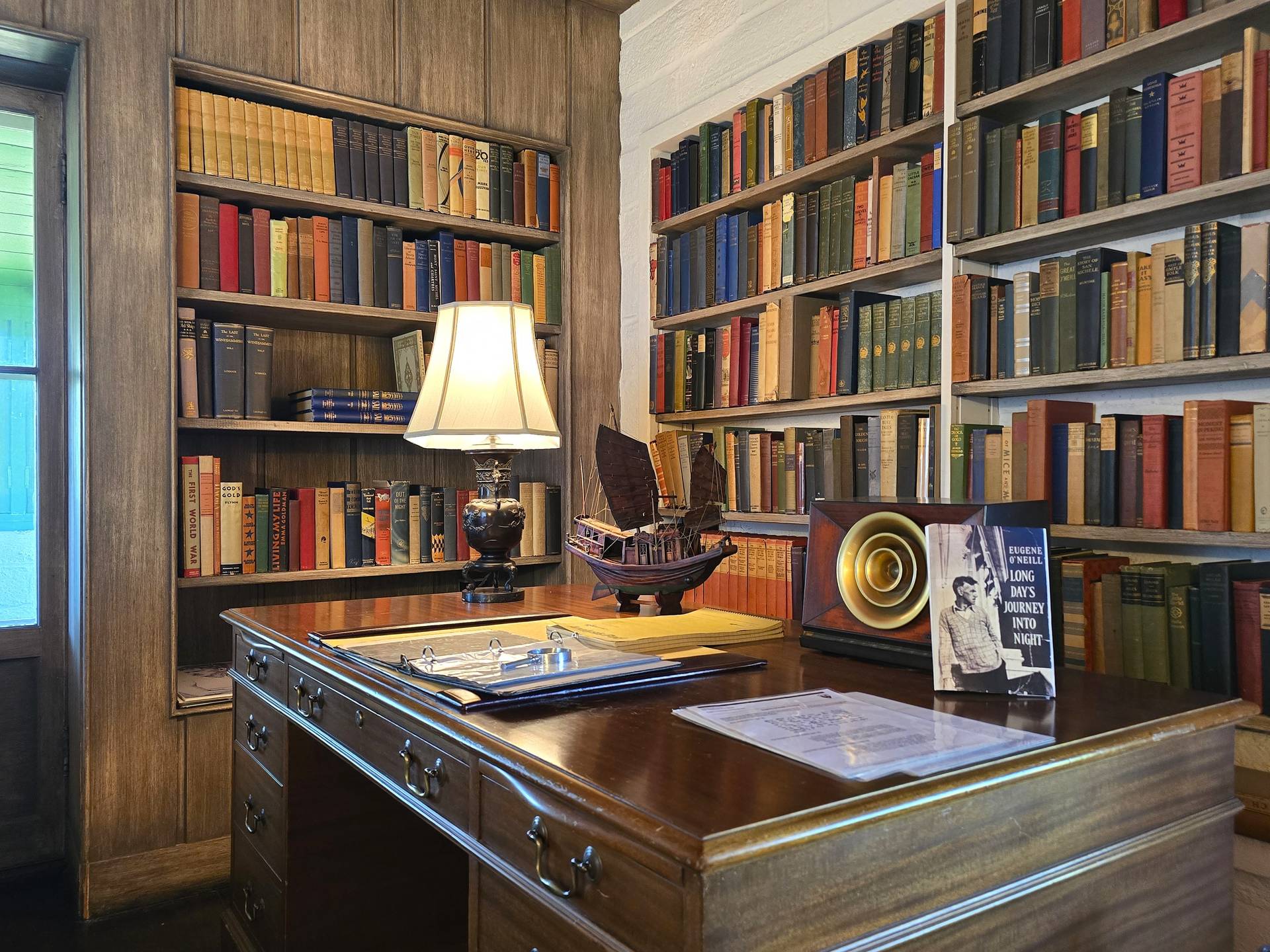 Das Reich des Hausherrn lag im Obergeschoss, von Carlotta entschieden vor Störungen abgeschirmt. Im Schlafzimmer, mit Blick auf den Mount Diabolo, fällt sein Bett ins Auge, das ursprünglich aus einer Opiumhöhle stammte. Im holzgetäfelten Arbeitszimmer stehen sich zwei Schreibtische gegenüber. O’Neill schrieb meist an verschiedenen Werken zugleich.