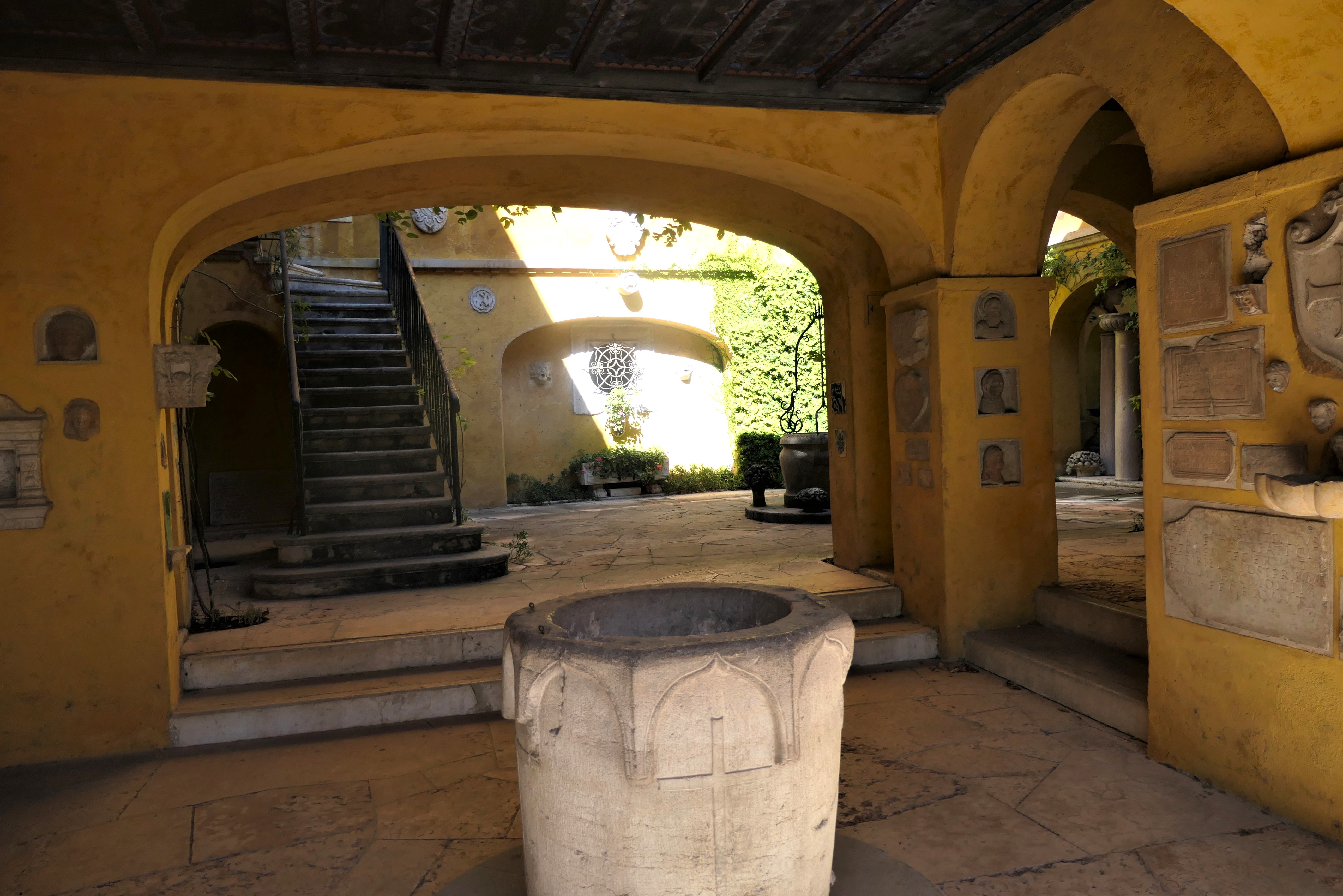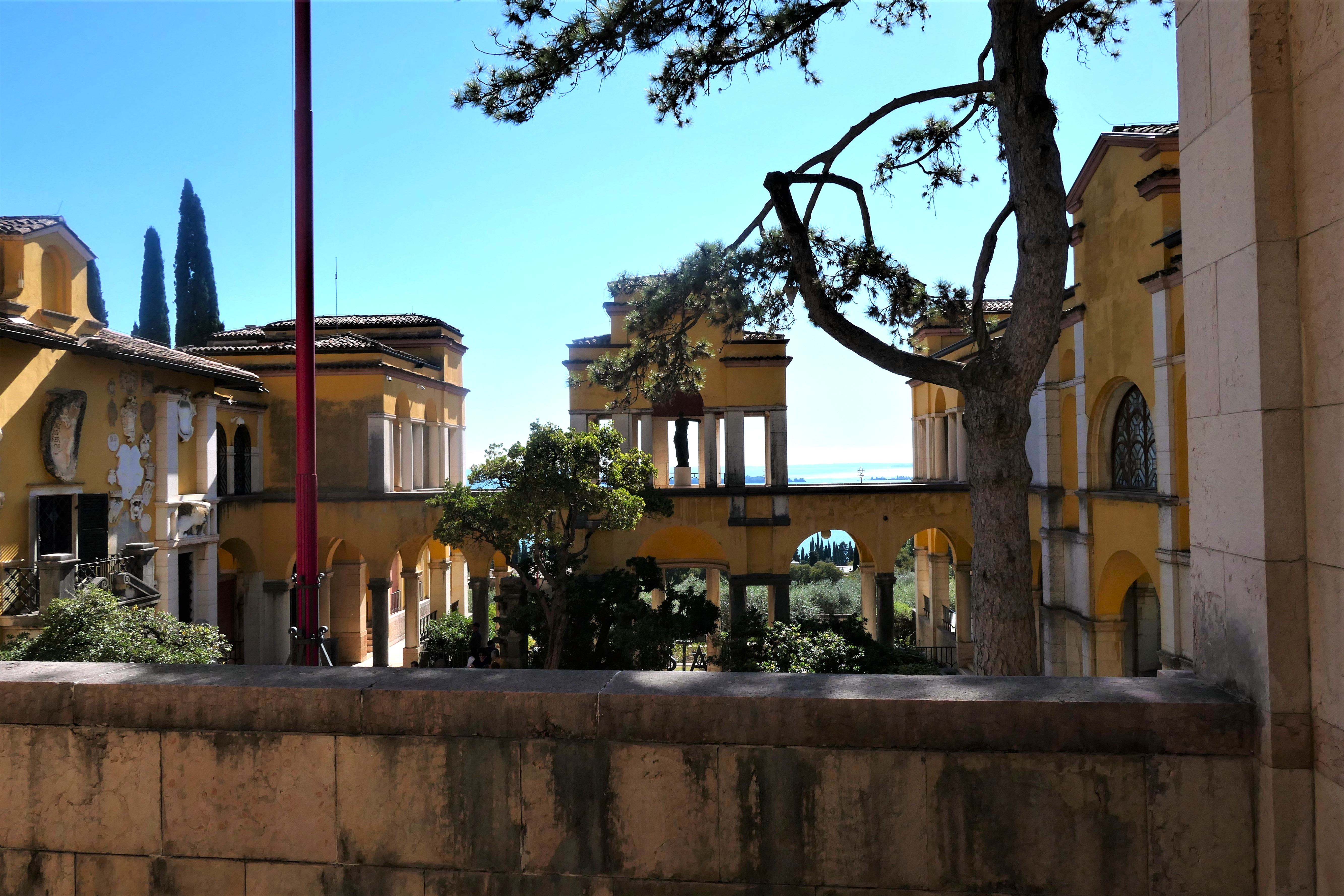 Gabriele D’Annunzio, berühmter Verfasser sprachtrunkener Gedichte, Dramen und Romane, lebte im Vittoriale von 1921 bis zu seinem Tod 1938. Zuvor hatte das einstmals noch schlichte Landhaus dem Heidelberger Kunsthistoriker Henry Thode und dessen Frau gehört, einer Tochter Cosima Wagners und Hans von Bülows. Im Ersten Weltkrieg war es vom italienischen Staat als Feindesgut beschlagnahmt worden. Das war D’Annunzios Chance, er griff zu. Der Gardasee hatte es ihm schon eine ganze Weile angetan: „Alles ist blau, wie eine unerwartete Trunkenheit, wie ein Kopf, der sich zurücklehnt, um geküsst zu werden. Der See ist von unaussprechlicher Schönheit.“ Um die ehemaligen Besitztümer der Thodes herum – etwa eine wertvolle Bibliothek, ein Porträt Cosima Wagners und ein Steinway-Flügel von Franz Liszt – entwarf D‘Annunzio zusammen mit seinem Architekten Giancarlo Maroni eine imposante Anlage. „Alles hier ist von mir geschaffen und verwandelt“, schwärmte D‘Annunzio. Il Vittoriale sollte seine Schöpfung werden. Bis zu seinem Tod formte und erweiterte er sein Reich nach seinen Vorstellungen: „Ich möchte die Orte erfinden, an denen ich lebe.“