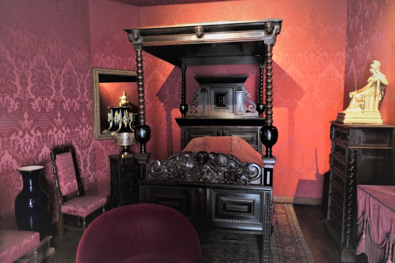 Der hinterste Raum blieb schon damals Hugos Schlafzimmer vorbehalten. Von dort führte eine Treppe nach unten, damit der Dichter, so heißt es, unbeobachtet seinen amourösen Abenteuern nachgehen konnte. Die heutige Einrichtung stammt aus Hugos letzter Pariser Wohnung, darunter sein Stehpult und das massive Bett mit gedrechselten Holzsäulen, in dem er 1885 verstarb.