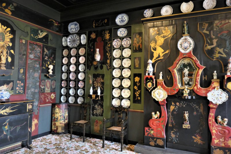 An das Empfangszimmer und den mit rubinrotem Damast ausgeschlagenen Salon, von dem aus der Blick auf die Ziegelsteinfassaden und Arkadengängen der Place des Vosges geht, schließen sich die Räume aus den Exiljahren in Guernsey an. Das Zimmer im chinesischen Stil mit den Monogrammen VH und JD sowie das Esszimmer mit den schweren, dunklen Holzmöbeln stammen aus dem Haus seiner Geliebten. Hugo hatte die Schauspielerin Juliette Drouet 1832 kennengelernt, zu einer Zeit als sich das Ehepaar Hugo bereits auseinandergelebt hatte. „Juju“ schrieb ihrem „Toto“ tägliche Liebesbotschaften. Über mehr als ein halbes Jahrhundert begleitete sie Hugo quasi als Zweitfrau – auch ins Exil.