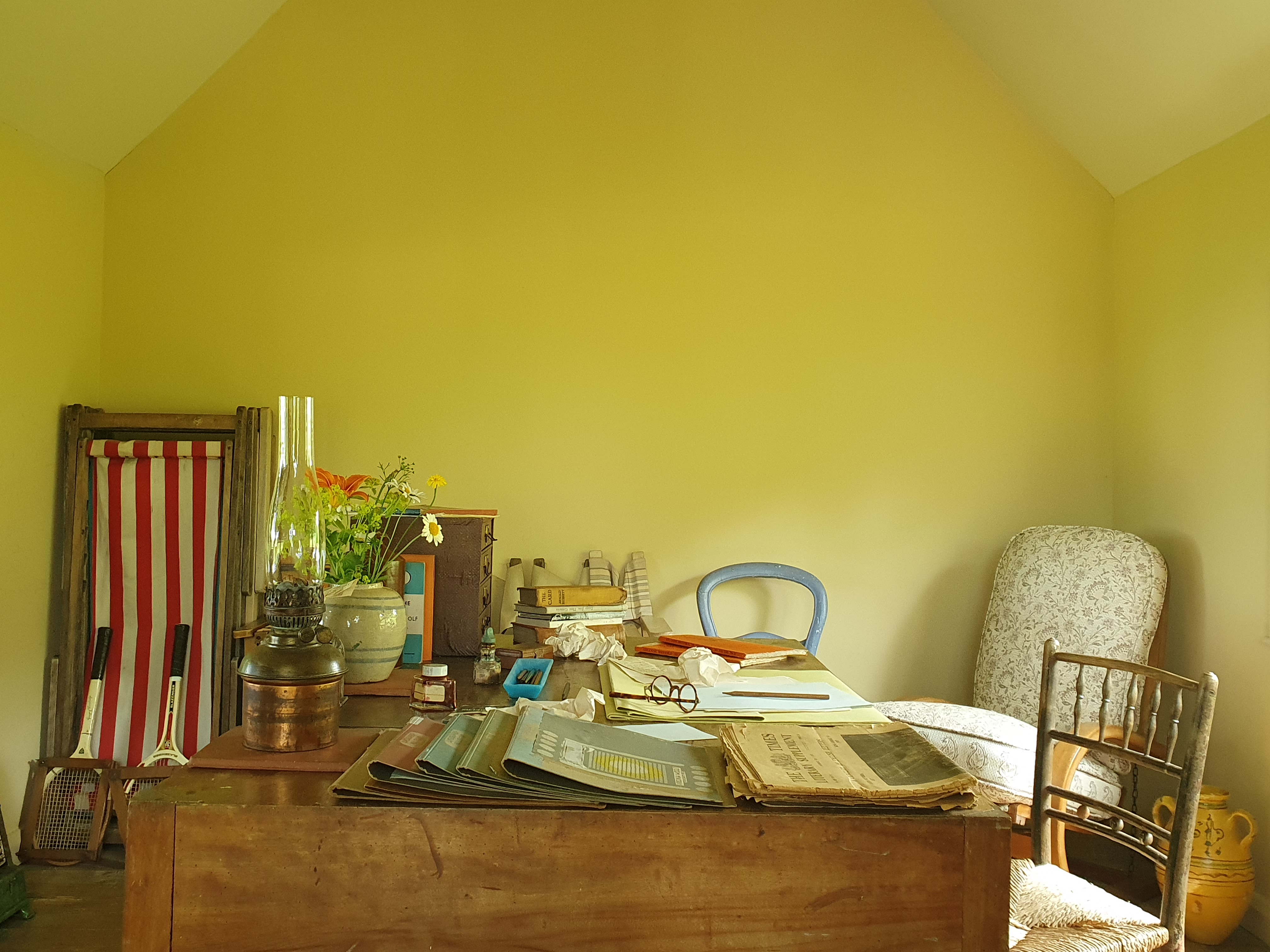 Virginias Schlafzimmer war nur durch eine separate Tür über den Garten zugänglich. Es ist „ein ganz entzückendes Zimmer, von so etwas habe ich immer geträumt“, schwärmte sie. Die wohnliche Atmosphäre trägt die Handschrift ihrer älteren Schwester, der Malerin Vanessa Bell. Zusammen mit ihrem Geliebten Duncan Grant hatte Vanessa die Räume im Haus – Lampen, Möbel, Bilder, Kamine, Tische – mitgestaltet. Auch die berühmten Porträts von Virginia Woolf stammen von ihr, ebenso viele Illustrationen für die Hogarth Press. Leonard und Virginia hatten den Verlag 1917 gegründet und betrieben ihn gemeinsam. Nicht nur die Bücher von Virginia Woolf selbst wurden dort veröffentlicht, sondern auch die Werke zahlreicher anderer zeitgenössischer Autoren wie T.S. Eliot, Katherine Mansfield, E.M. Forster, Sigmund Freud, Vita Sackville-West, Gorki, Rilke oder Dostojewski.
